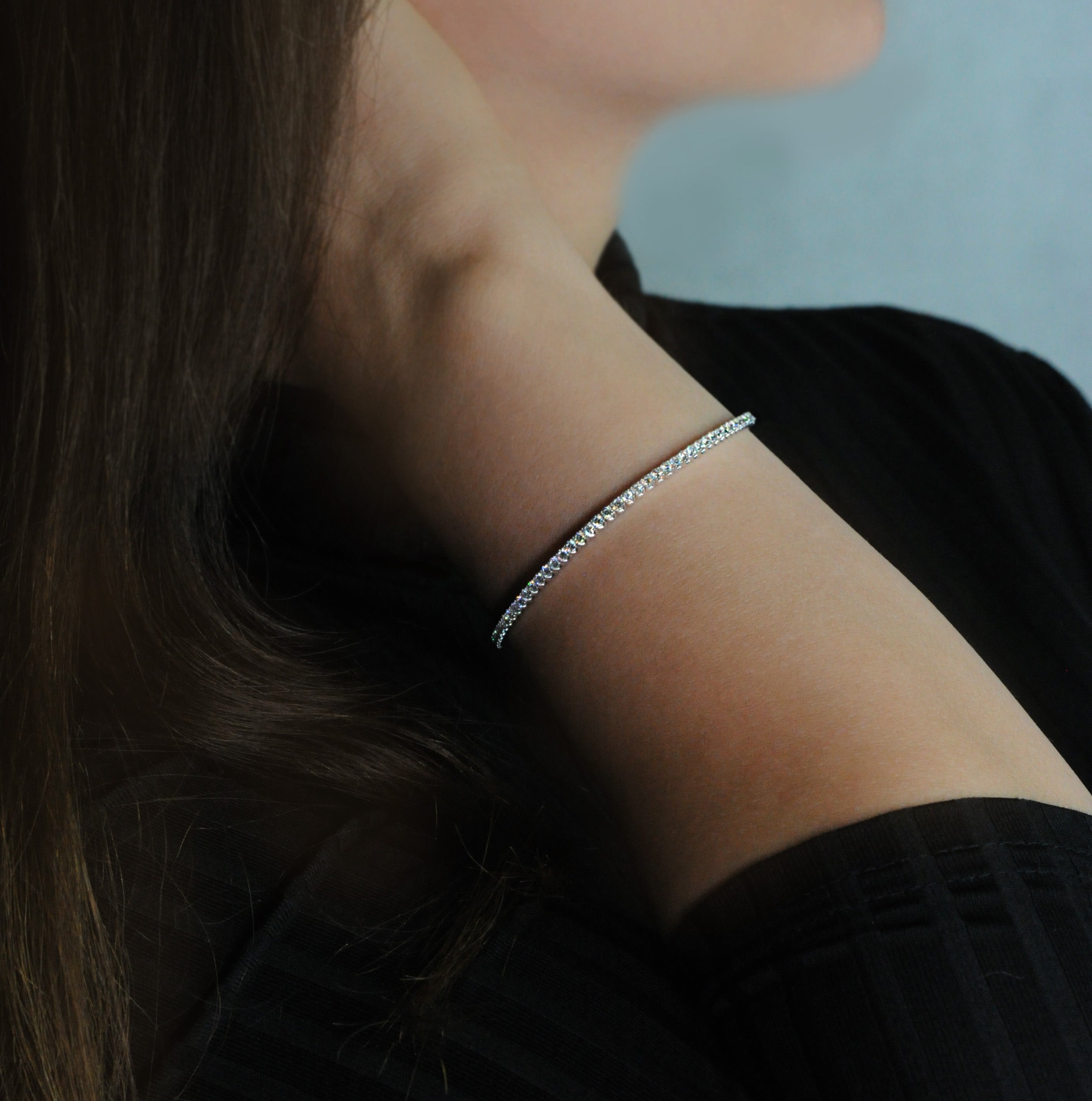 Durch das innovative und einzigartige Design passen sich die Flex-Schmuckstücke ganz einfach seinem Träger oder seiner Trägerin an. Dank unsichtbaren Titanfedern dehnt sich das Armband und kann so bequem über das Handgelenk gezogen werden. Zudem macht es das Tragen der Armbänder besonders sicher, da Sie keinen Verschluss haben, der aufgehen kann. Modernste Technologie und herausragende Handwerkskunst machen es möglich. Flex Schmuck von Kuck – Schmuck, der sich Ihrem Leben anpasst.