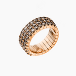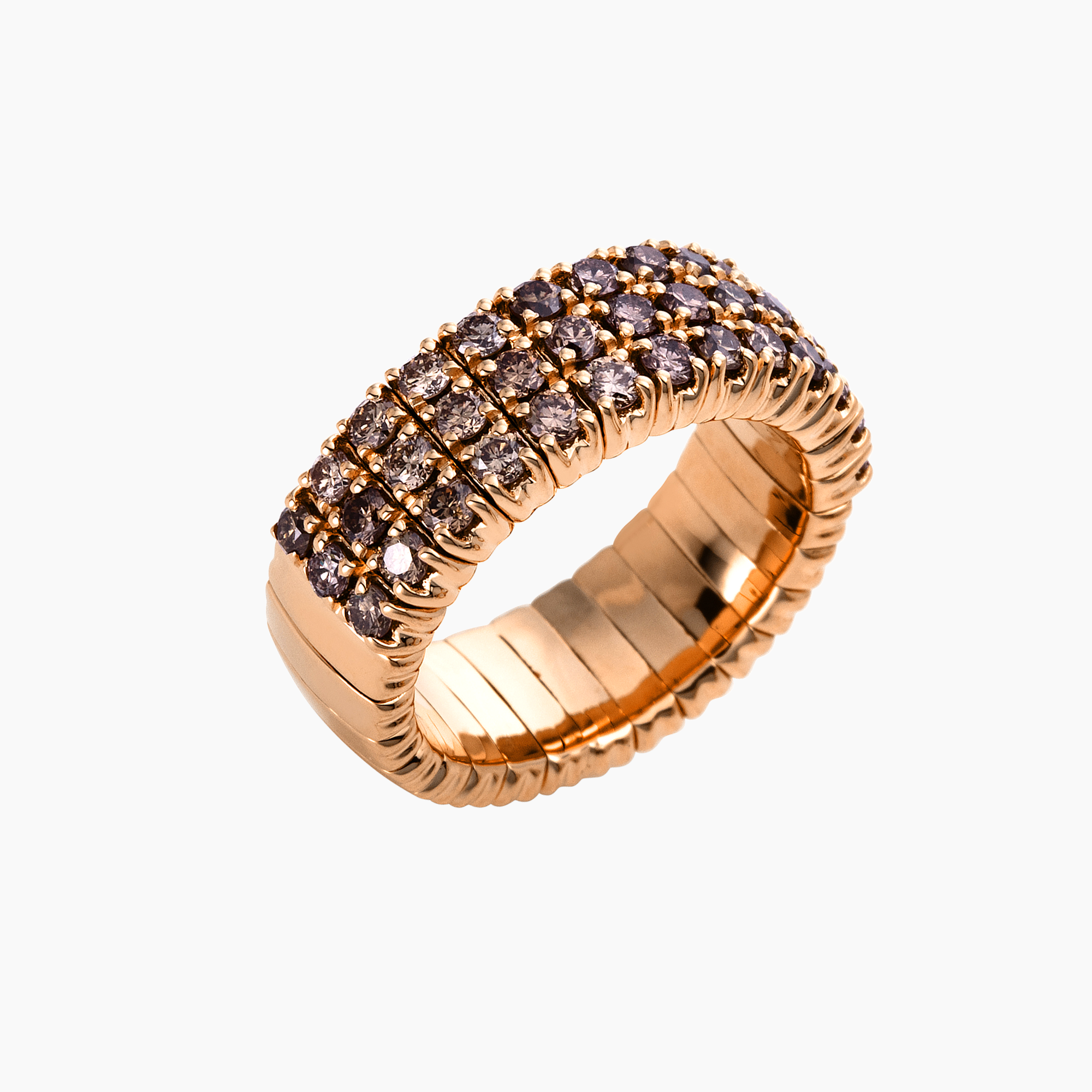 Der Ring ist mit gleich drei Reihen naturbrauner Diamanten im Brillantschliff besetzt und wird dadurch zum besonderen Hingucker an Ihrer Hand. Durch die flexiblen Glieder bietet er trotz der Breite einen hohen Tragekomfort.