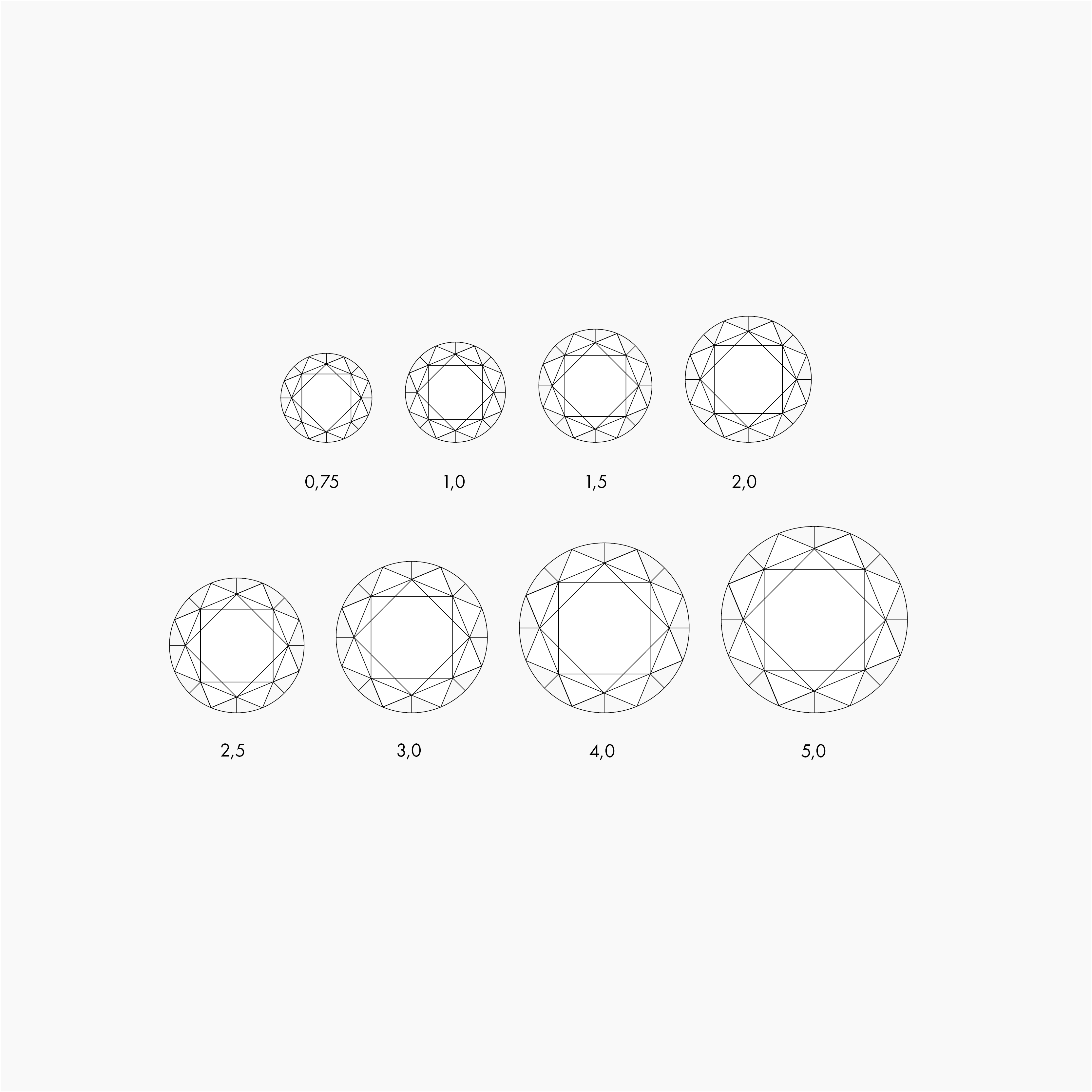 Das Gewicht und damit die Größe eines Diamanten wird in Karat ausgedrückt. Ein Karat entspricht 0,2 Gramm.